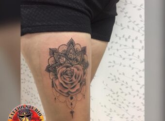 Fresquinha saiu agora, uma bela rosa sombreada com mandala estilo lotes de fundo com um toque de pontilhismo, curtiu a receita então curta aí…. #tatuagemperna #tatuagemrosa #tattoo #tatuagemfeminina #tatuagemdelicada #tattoofeminina #tattoooperna #submundotattoo