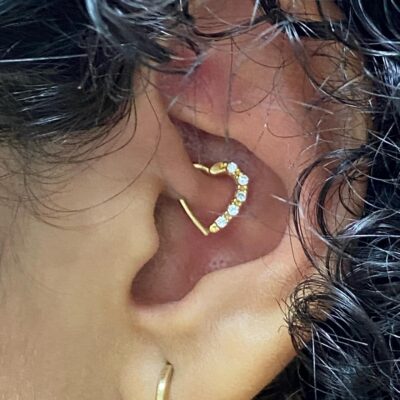 DAITH E CONCH Aplicação feita com piercing coração com pedras e piercing o…