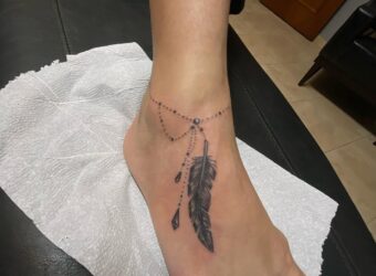 Uma linda tornozeleira no pé com penas tatuagem sombreada para dar aquele caimento não hora de por um salto 😍