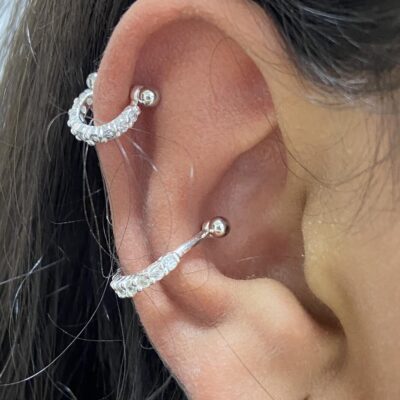 Olha só ela! Com seu piercing Helix e piercing Conch, sua orelhinha está toda montada e brilhante. Esses adereços dão um toque especial ao seu estilo e deixam sua orelha ainda mais bonita e estilizada. Cada detalhe foi cuidadosamente escolhido para realçar sua personalidade e expressar sua individualidade. Agora, sua orelha é uma verdadeira obra de arte, pronta para ser exibida com orgulho. Parabéns por ter coragem de se expressar dessa maneira tão original!