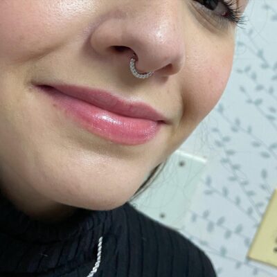 Escreva um texto sobre: Piercing no Septo com micropontos em brilhante, joia em aço
